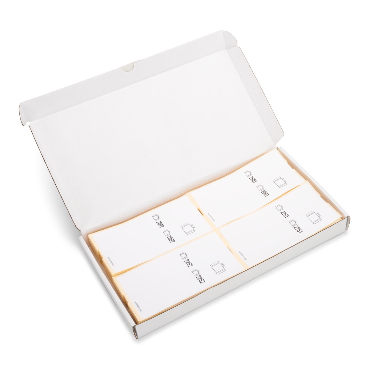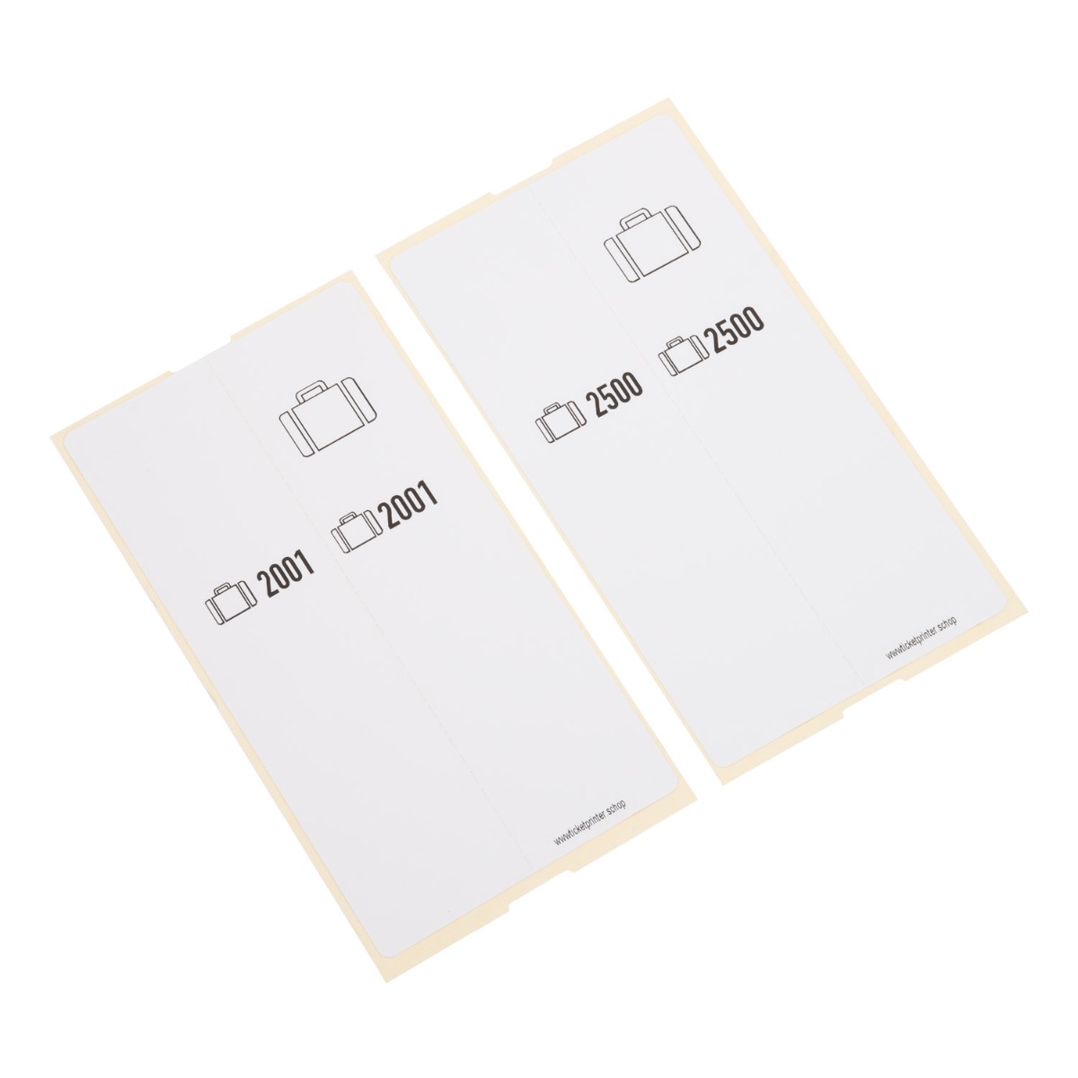 Pre-printed paper self-adhesive luggage tags. Value pack containing 500 pre-printed tickets. Easy solution for events. Use the numbered sequences to check your turnover. Need luggage tags more frequently? Have a look at our Coatcheck Ticketprinter, a great solution to print your own tickets - up to 50% cheaper than pre-printed tags.
