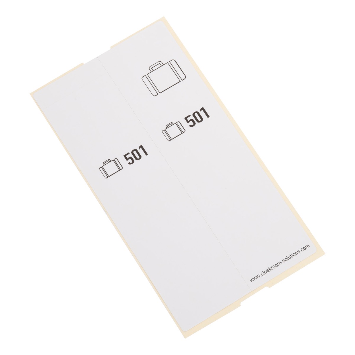 - vous donnez la moitié droite de l'étiquette au client, la moitié gauche est autocollante et se place autour de la poignée d'un sac ou d'une valise