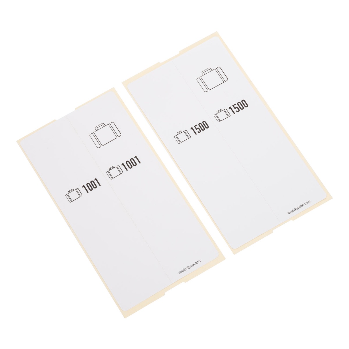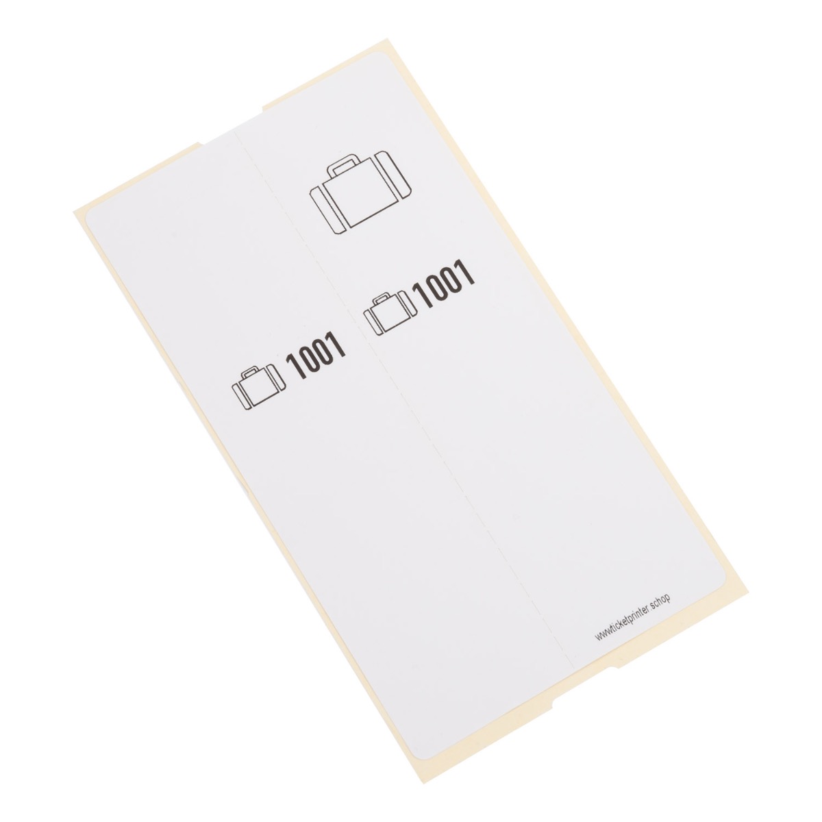 - rechterhelft van het label geeft u aan de klant, de linkerhelft is zelfklevend en gaat om het handvat van een tas of koffer