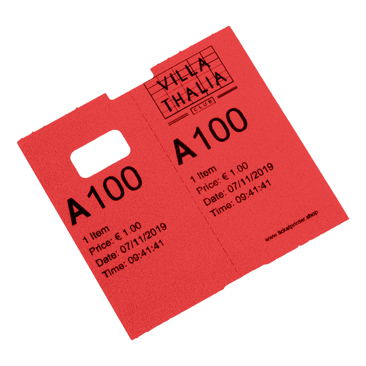 - rechterhelft van de ticket geeft u aan de klant, de linkerhelft gaat om de hanger of het haakje.