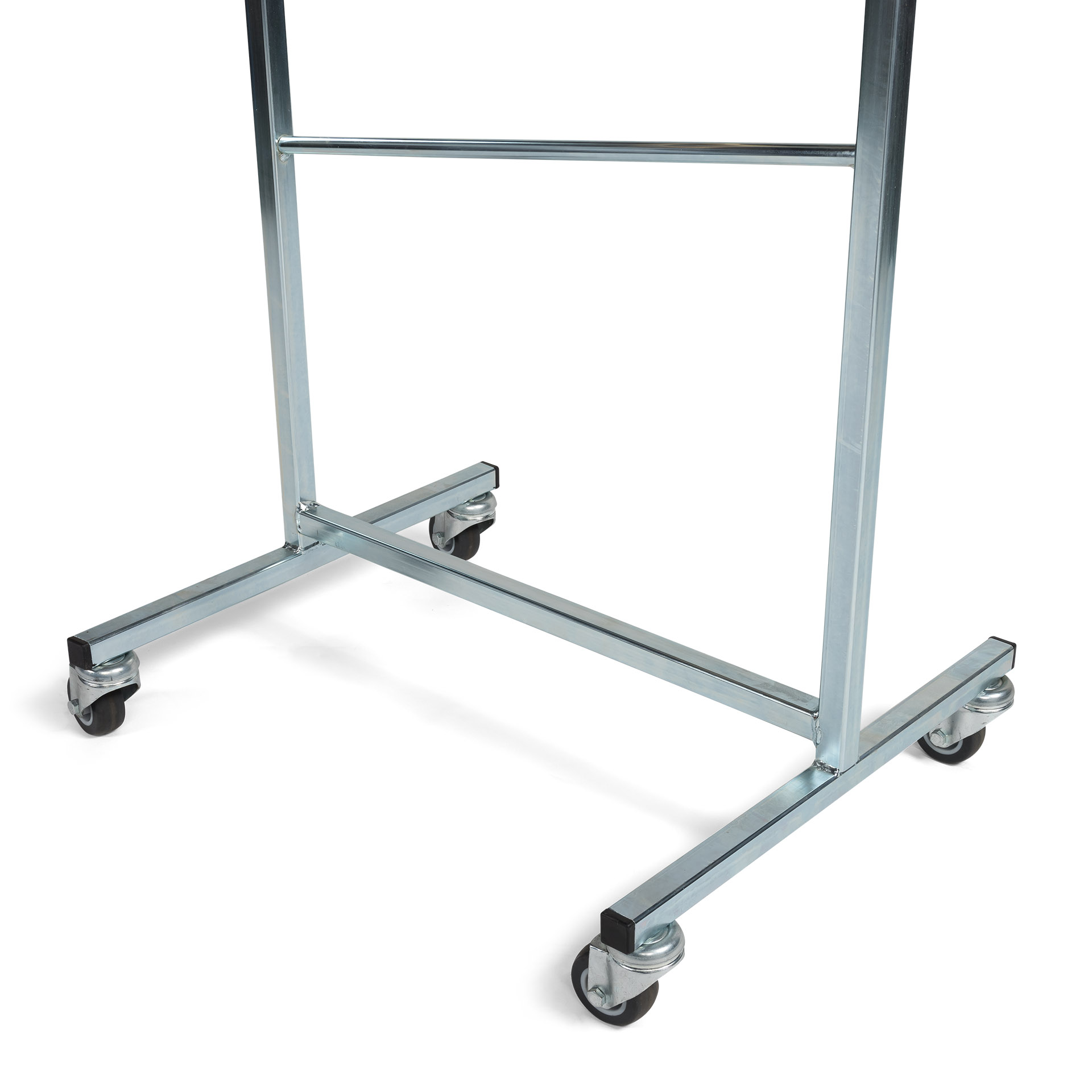 Nieuw in ons assortiment: kleding hanger standaards om lege hangers vanaf te pakken. Vervaardigd van ronde en vierkante buizen (van zink), met wieltjes - dus gemakkelijk verrijdbaar. Standaard is ook leverbaar zonder wieltjes.
